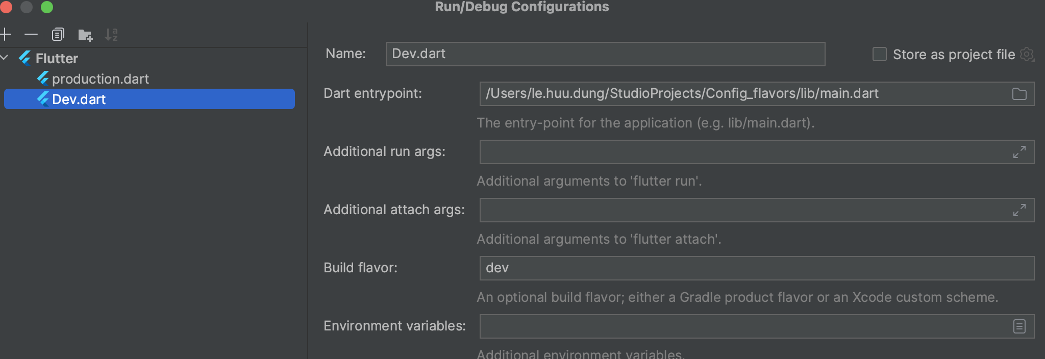 Cách config flavors: https://docs.flutter.dev/deployment/flavors
